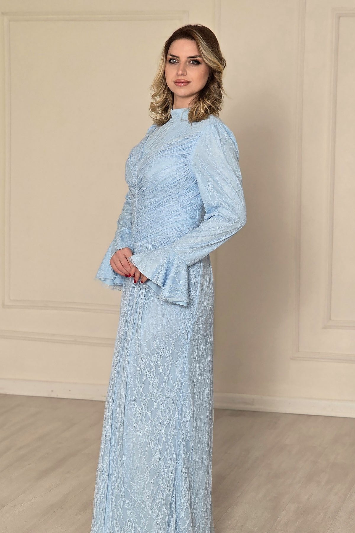 BEBE MAVİSİ İspanyol Kol Dantel Elbise 5656