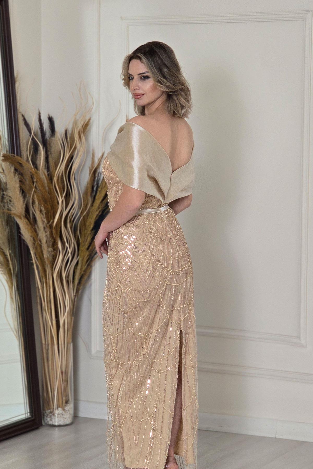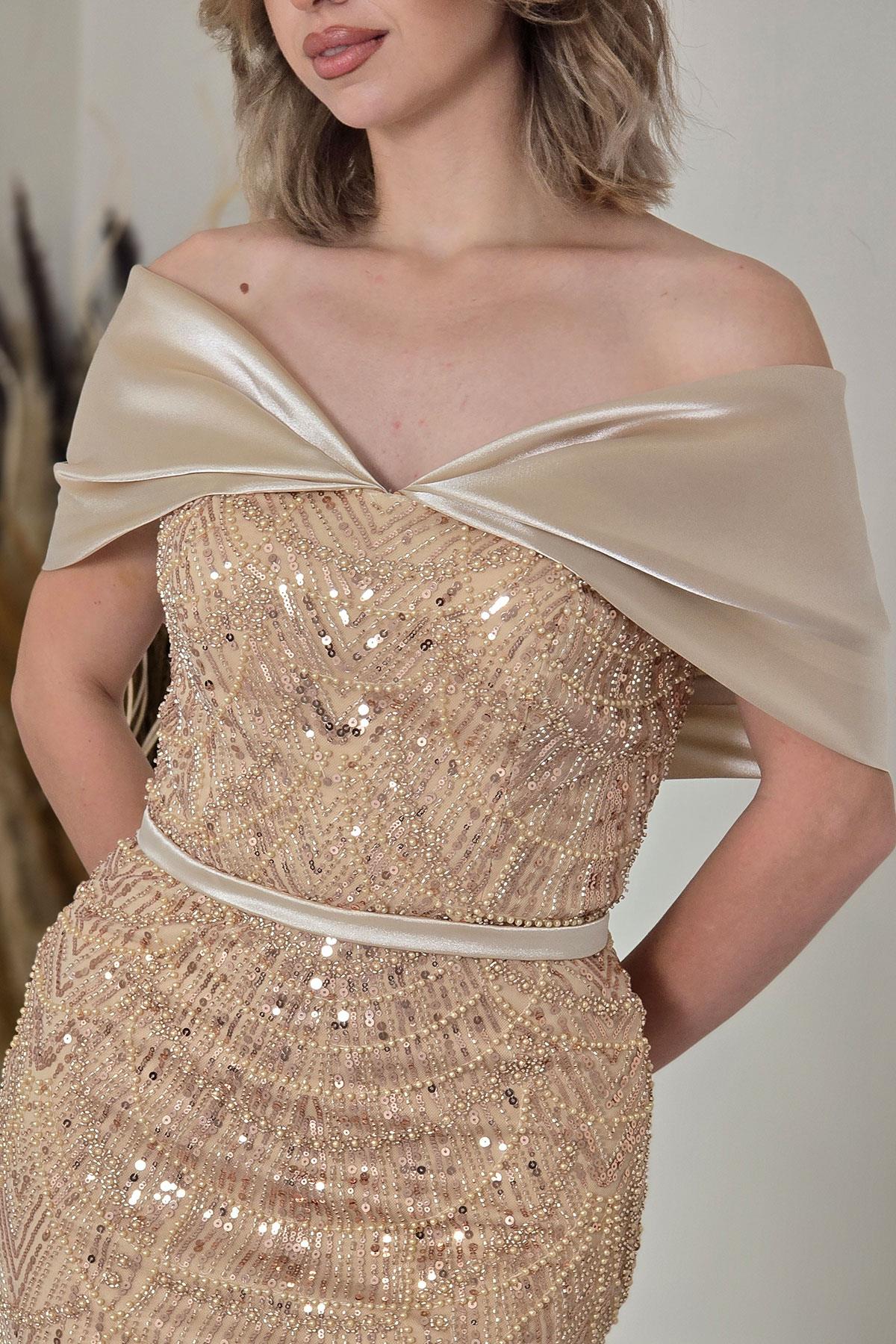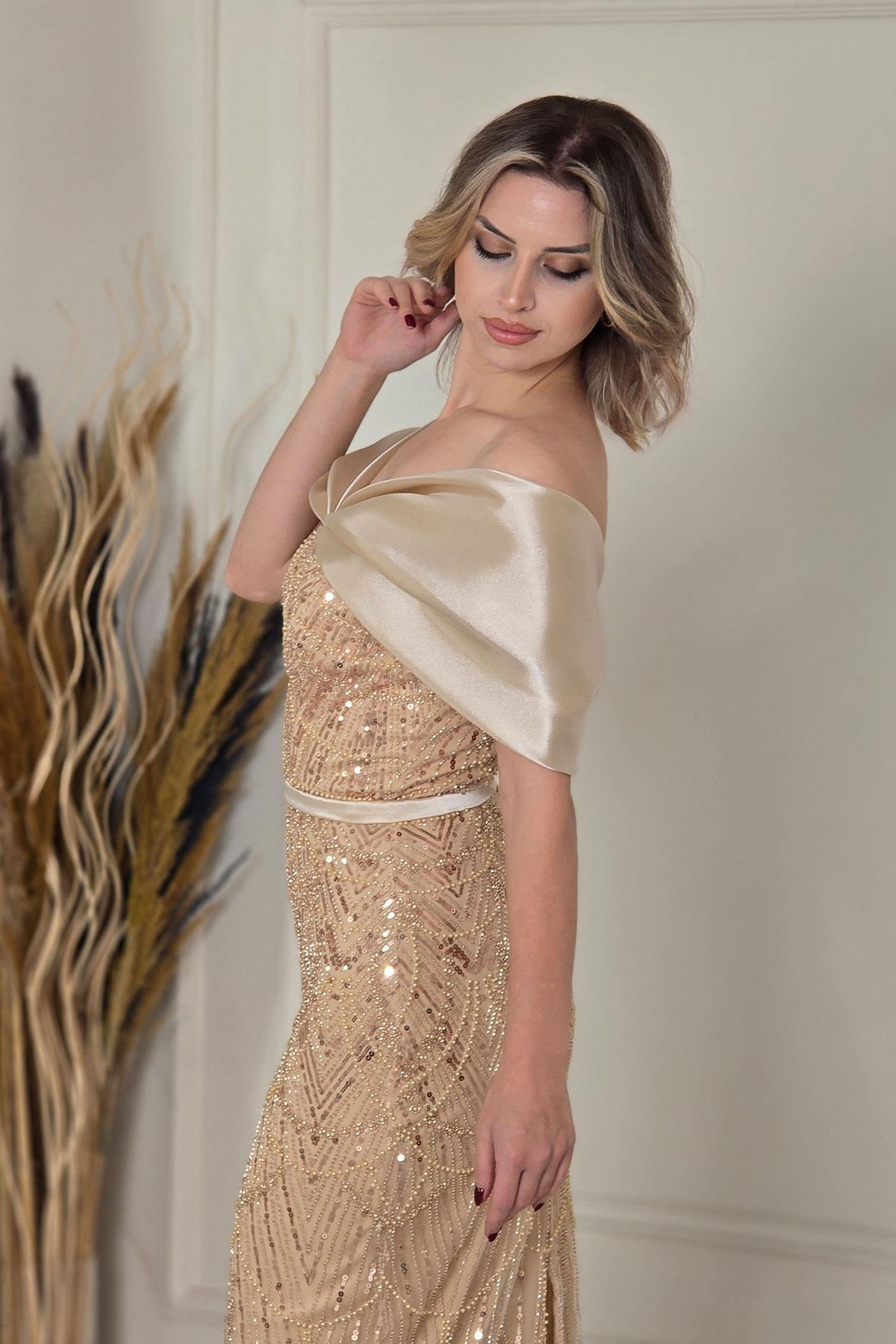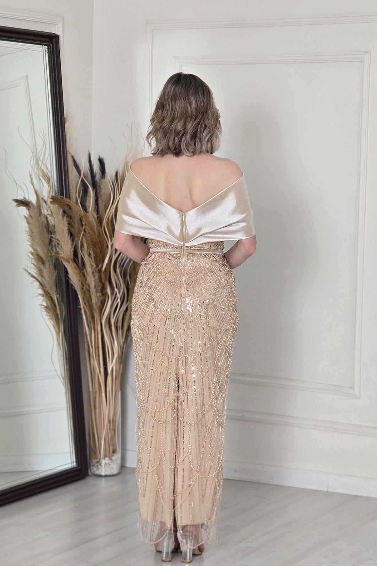 Gold Etol Yaka Boncuklu Araboy Abiye 9004