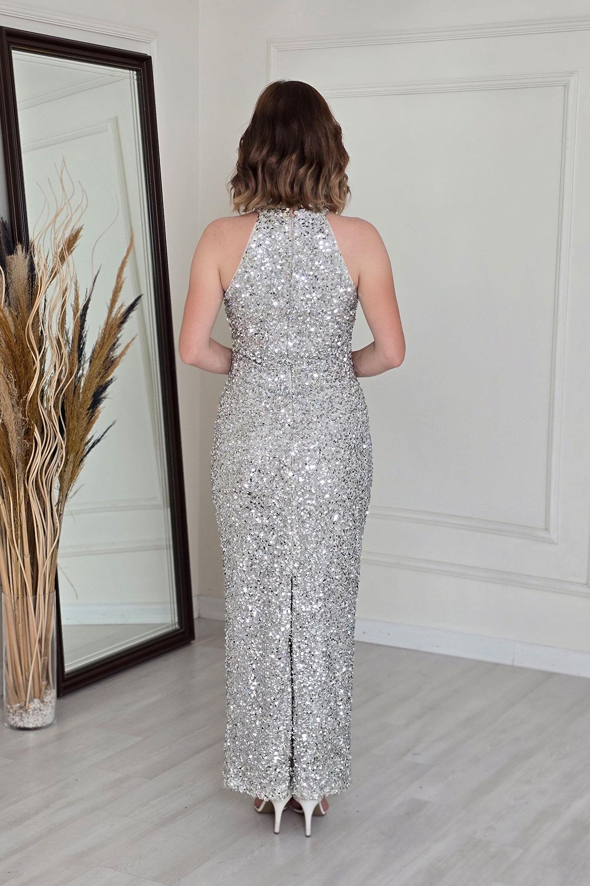 Gümüş Pulpayet Dikyaka Midiboy Abiye 1001