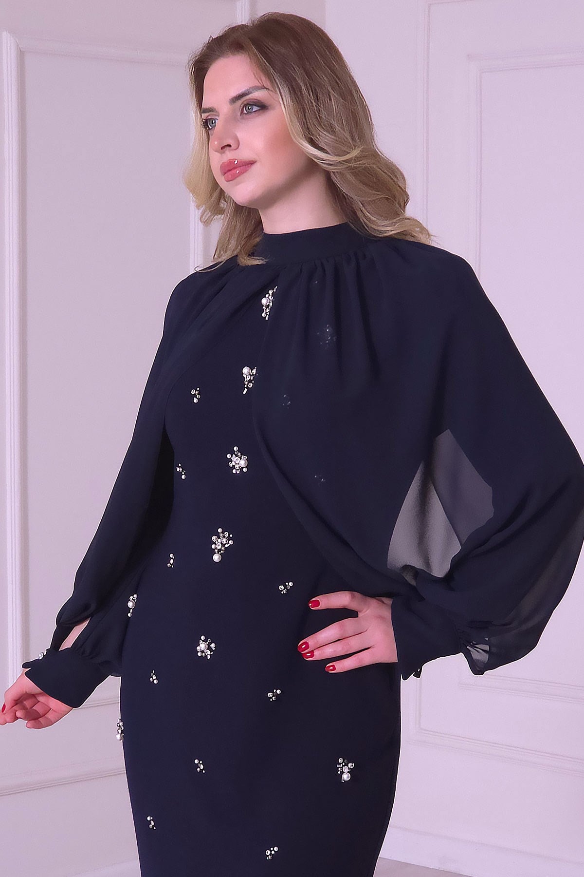 Lacivert Bolerolu Krep Elbise 4446