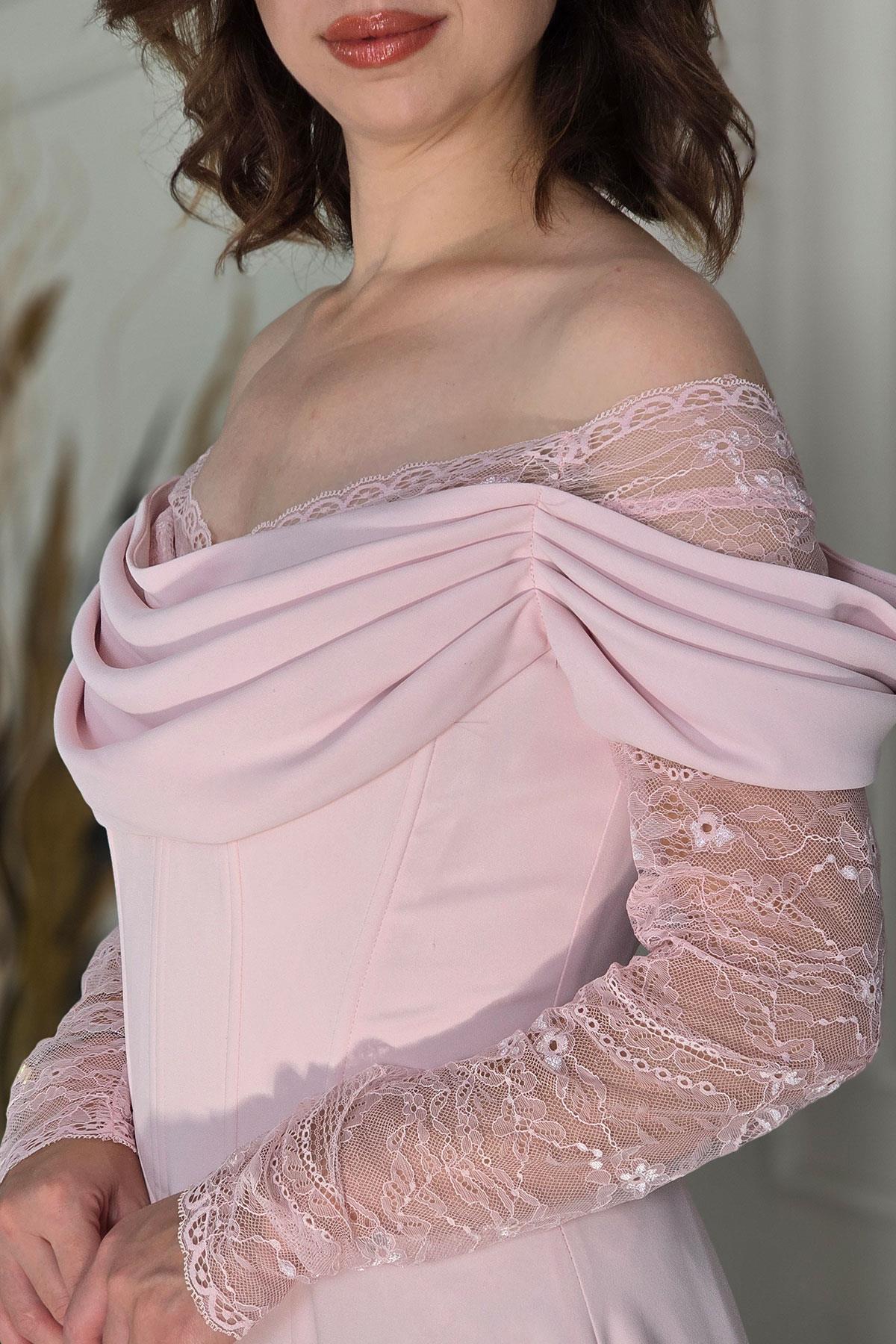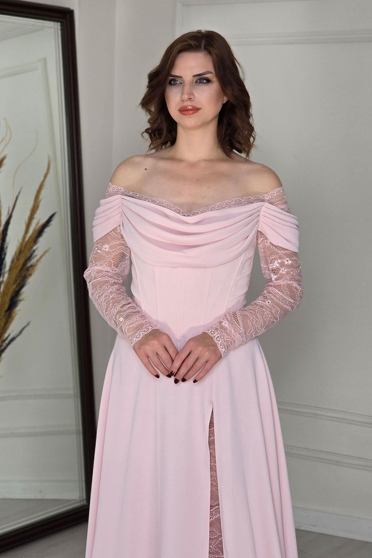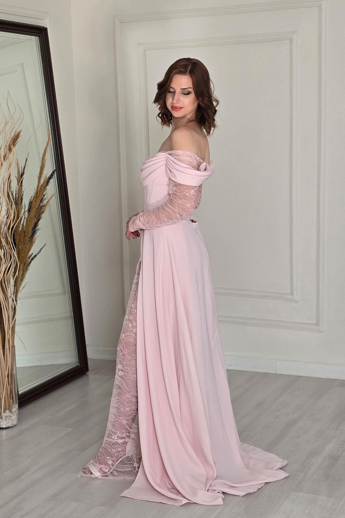 Pembe Dantel Kollu Tasarım Elbise 2718