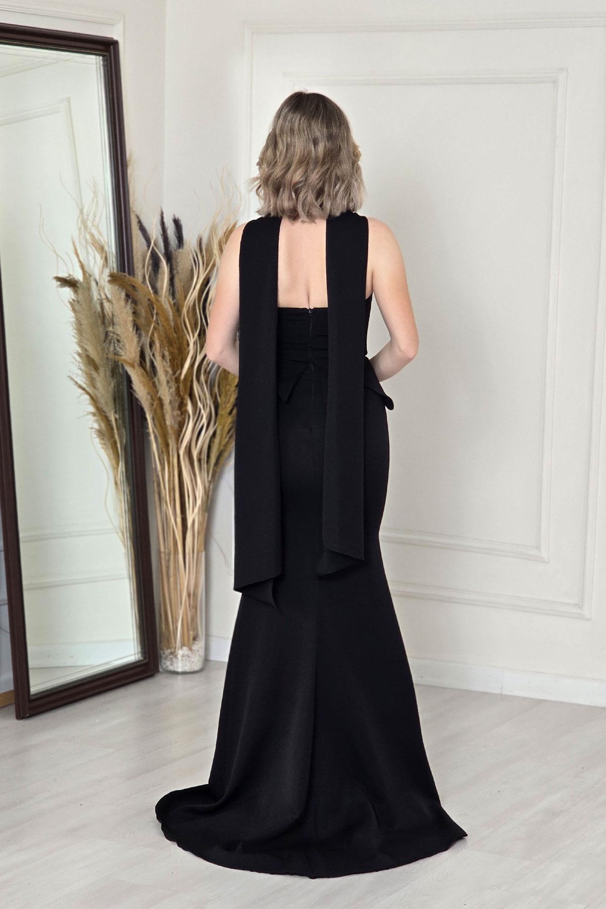 Siyah Boyundan Bağcıklı Korseli Abiye 9822