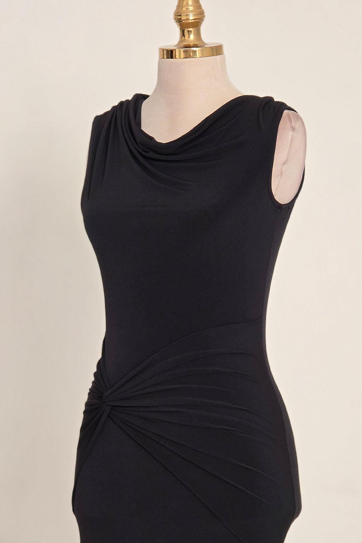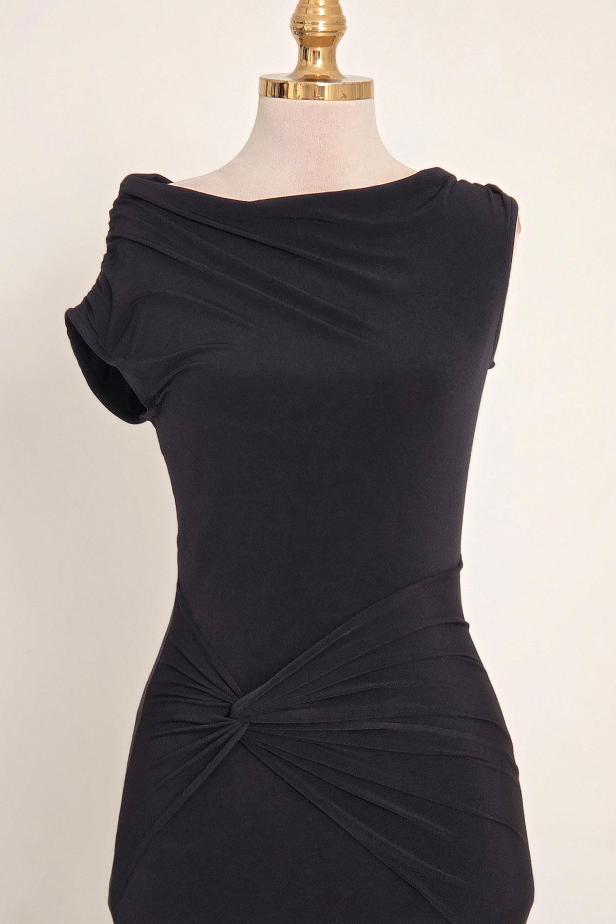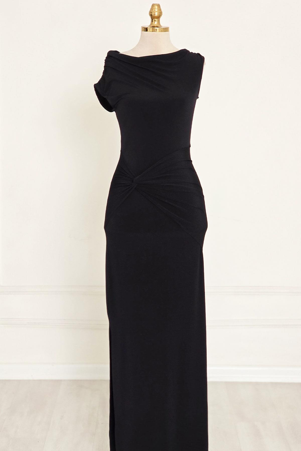 Siyah Düşük Omuz Yan Düğümlü Elbise 251621