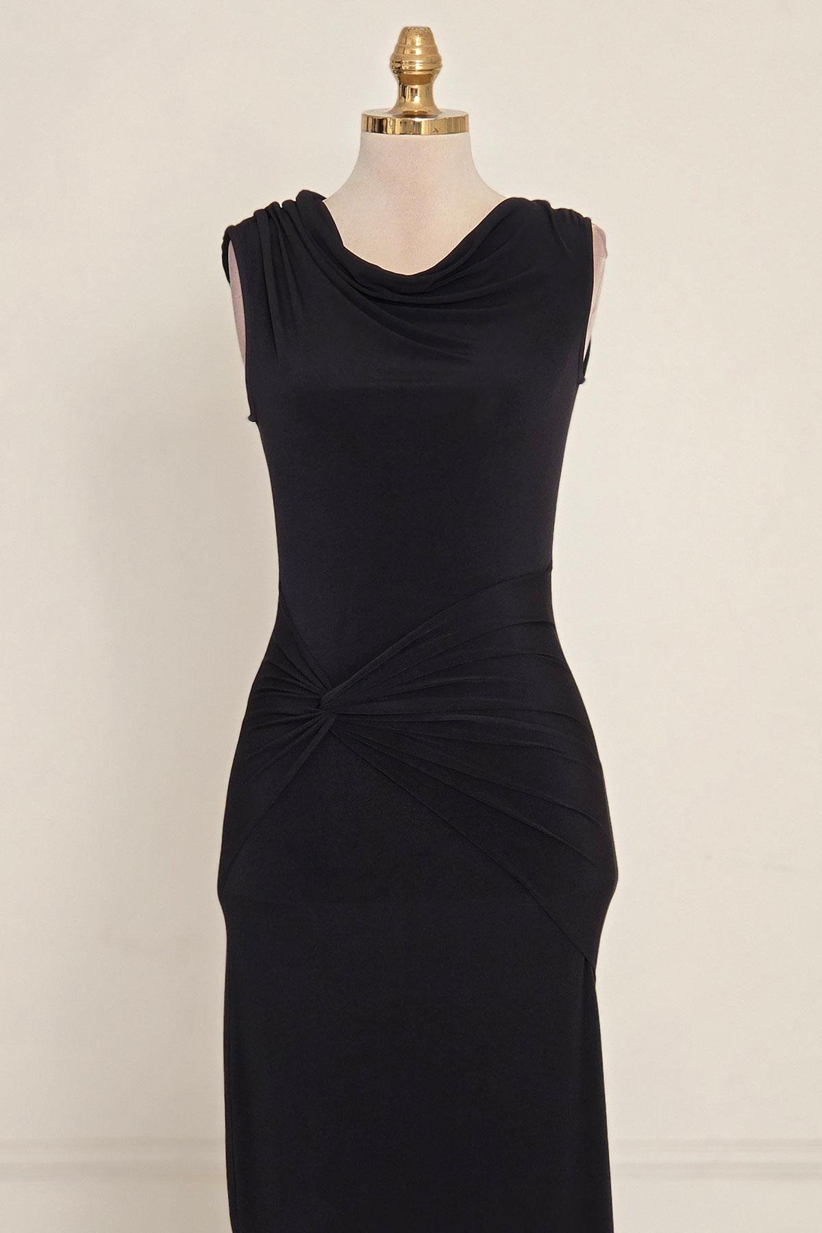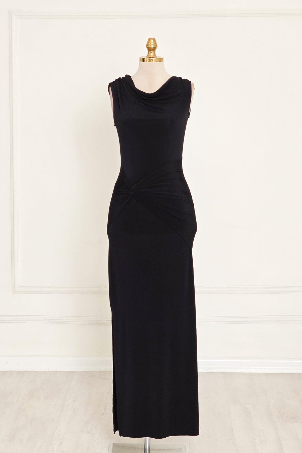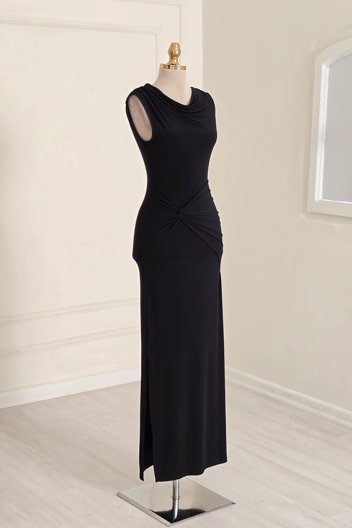 Siyah Düşük Omuz Yan Düğümlü Elbise 251621