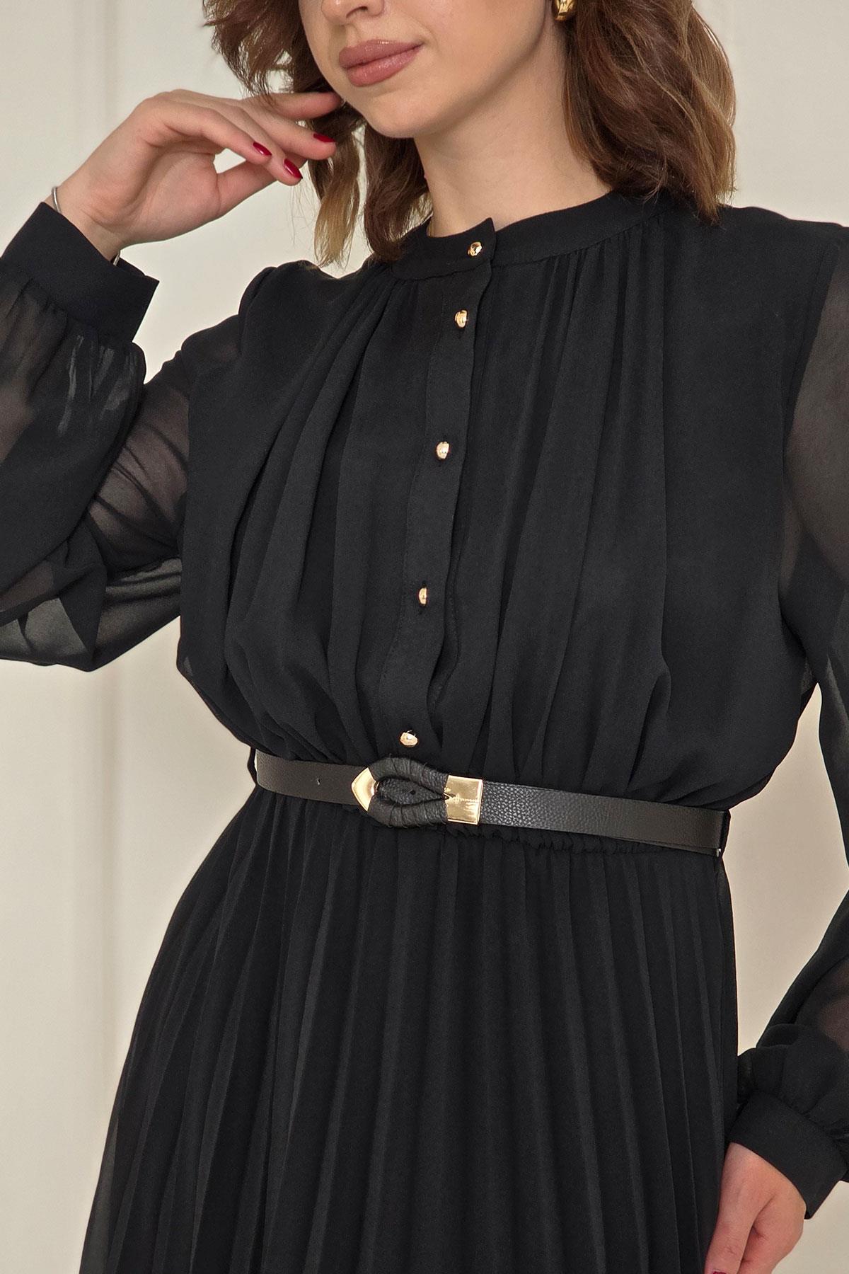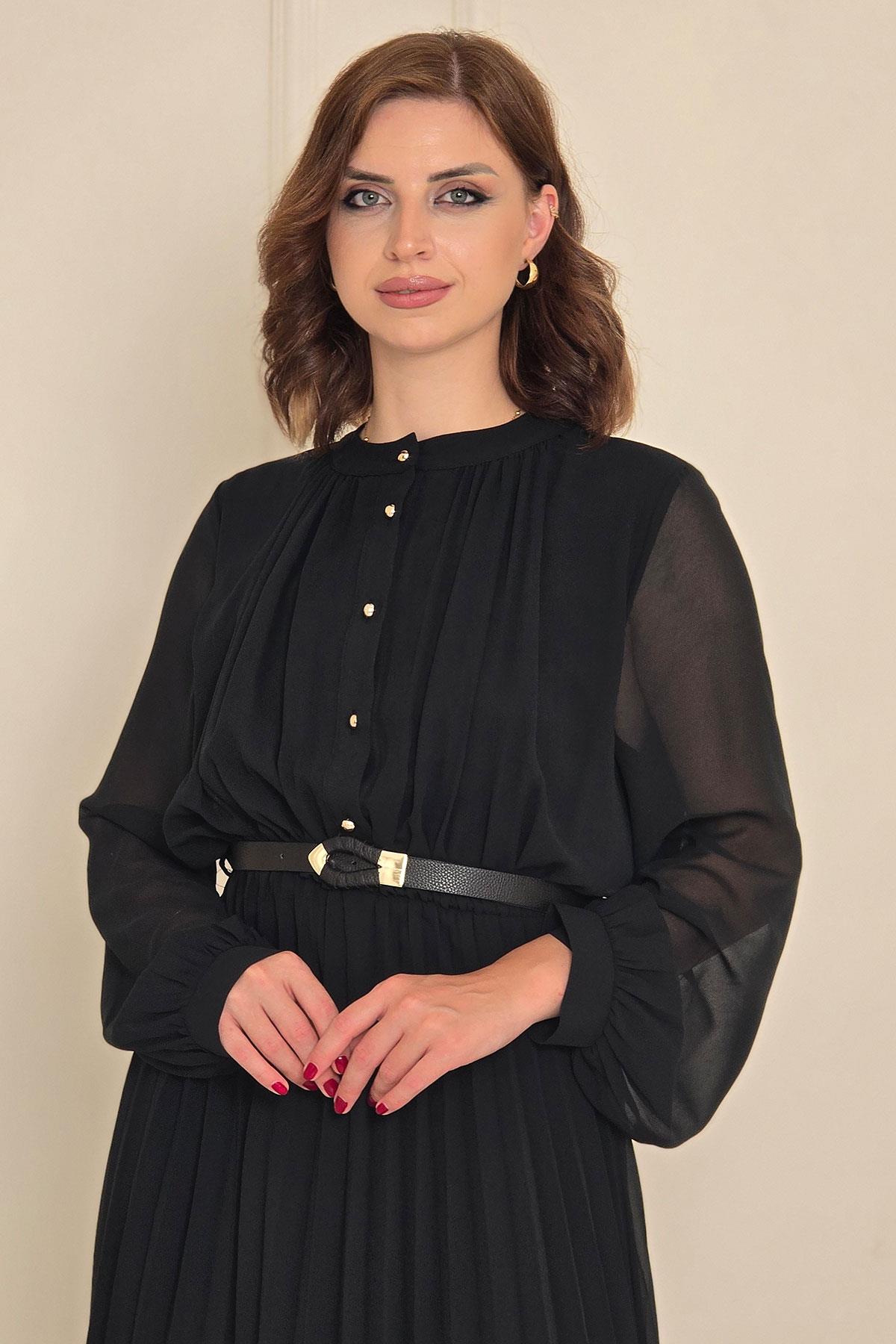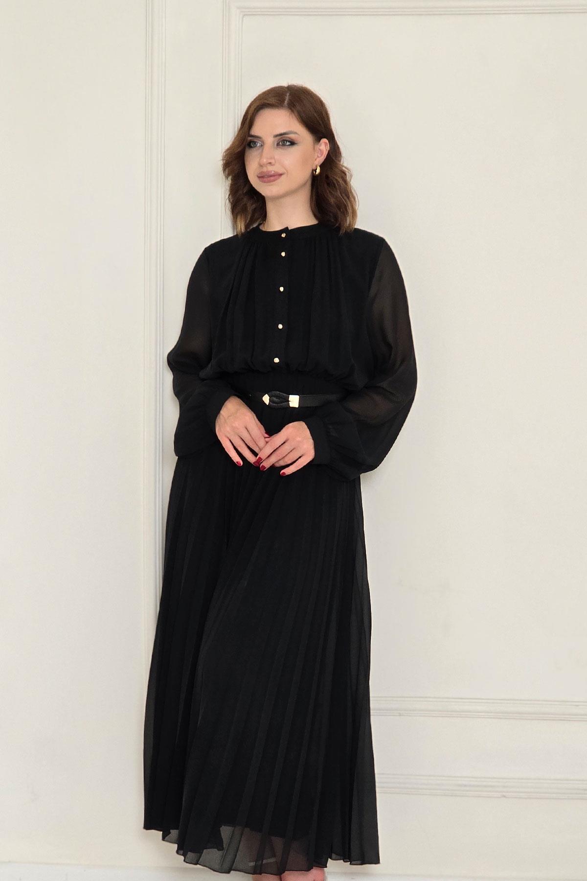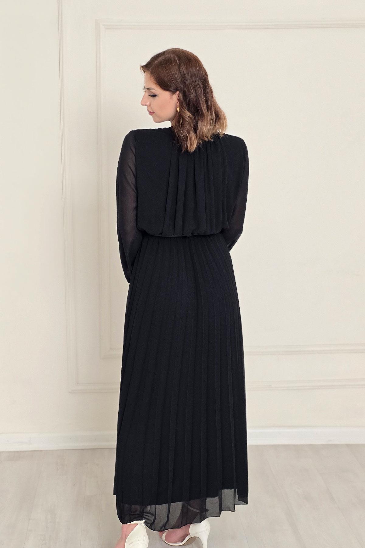 Siyah Pliseli Elbise 252669