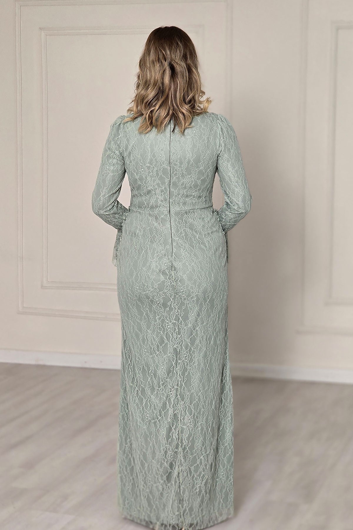 Su Yeşili İspanyol Kol Dantel Elbise 5656